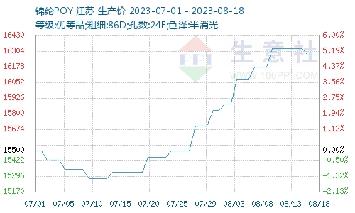 據(jù)生意社商品行情分析系統(tǒng)顯示,本周(2023年8月14日—8月18日),錦綸長絲價格高位松動,小幅下跌。截止2023年8月18日,江蘇地區(qū)錦綸長絲DTY(優(yōu)等品;70D/24F)報價18560元/噸,較上周價格下跌40元/噸;錦綸POY(優(yōu)等品;86D/24F)報價16275元/噸,較上周價格下跌50元/噸;錦綸FDY(優(yōu)等品:40D/12F)價格報19550元/噸,較上周價格下跌25元/噸。