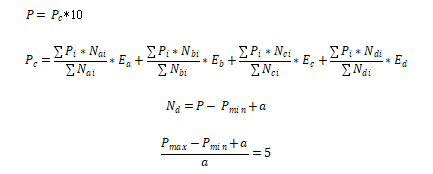 Pc由廠商報價(Pi)根據(jù)對應廠商實際生產(chǎn)高品質(zhì)生絲的繅絲機組數(shù)(Nai)、上一年度高品質(zhì)生絲生產(chǎn)量(Nbi)、上一年度經(jīng)過公檢和商檢的高品質(zhì)生絲數(shù)量(Nci)、品牌價值(Ndi)進行加權產(chǎn)生,對應比例為Ea、Eb、Ec和Ed。
