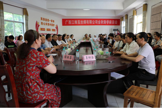 8月29日上午九時,廣西江緣繭絲綢有限公司在二樓會議室隆重召開“金秋助學(xué)座談會”,來自公司各部門各生產(chǎn)單位的56名員工攜帶參加今年高考并被錄取的子女與公司領(lǐng)導(dǎo)歡聚一堂,現(xiàn)場氣氛活躍,反響熱烈。