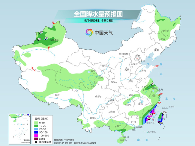 明天,江西中南部、福建、廣東東部等地部分地區(qū)有中到大雨,其中,福建東部、廣東東北部等地部分地區(qū)有大暴雨,局地有特大暴雨(250~350毫米)。