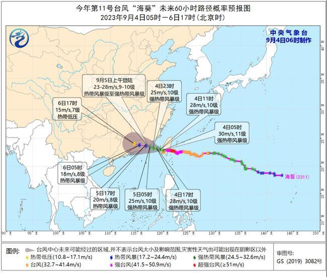 預計,“??睂⒁悦啃r10公里左右的速度向西偏北方向移動,逐漸向閩粵交界一帶沿??拷?,并將于5日上午在福建漳浦至廣東惠來一帶沿海登陸。