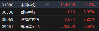 旅游股漲幅居前,中國(guó)中免漲超9%。消息面上,中國(guó)中免此前公布中期業(yè)績(jī),營(yíng)業(yè)收入約人民幣358.58億元,同比增長(zhǎng)29.68%;歸屬于上市公司股東的凈利潤(rùn)約38.66億元。廣發(fā)證券(11.48, 0.28, 2.50%)表示,隨著匯率影響減弱疊加折扣水平收窄,公司盈利能力呈現(xiàn)改善趨勢(shì),23年上半年毛利率環(huán)比22年下半年上升8.01pct、二季度毛利率環(huán)比一季度上升3.83pct。