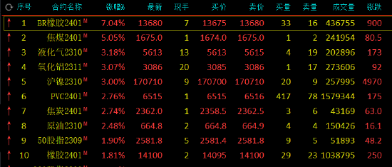 午盤收盤,國內(nèi)期貨主力合約漲跌不一,丁二烯橡膠(14175, -195.00, -1.36%)(BR)漲超7%,焦煤(1701, 34.00, 2.04%)漲超5%,氧化鋁、滬鎳(170240, -870.00, -0.51%)、液化石油氣(LPG)漲超3%,聚氯乙烯(PVC(6528, 32.00, 0.49%))、原油、焦炭(2380, 20.50, 0.87%)漲超2%。下跌方面,尿素跌超6%,純堿跌超4%,菜粕跌超3%,棉花(17470, -165.00, -0.94%)、淀粉(2999, -13.00, -0.43%)、玻璃(1779, -9.00, -0.50%)跌超2%。
