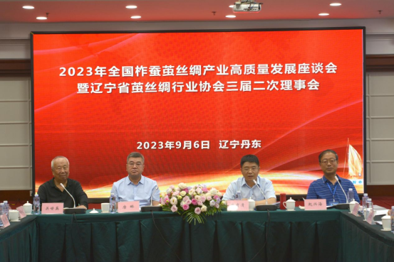 2023年9月6日,全國柞蠶繭絲綢高質(zhì)量發(fā)展座談會暨遼寧繭絲綢協(xié)會三屆二次理事會在丹東召開。中國絲綢協(xié)會會長唐琳、中國絲綢協(xié)會黨支部書記、監(jiān)事長錢有清等行業(yè)領導以及來自遼寧、吉林、黑龍江、 河南、江蘇、廣西、重慶、北京等地的50多名代表參加了會議。