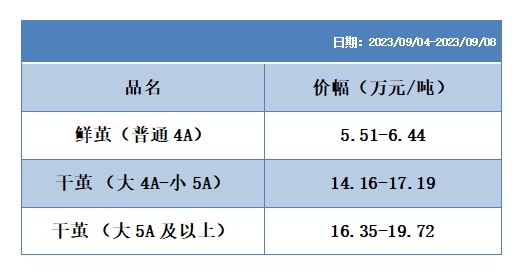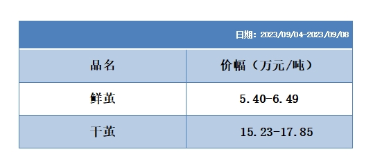 根據(jù)本周蠶繭報價按照指數(shù)方案形成的基準品價格區(qū)間