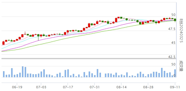 今日(2023年09月11日,周一)中國(guó)繭絲綢交易市場(chǎng)生絲指數(shù)下跌0.53%收于4901.24點(diǎn)。B絲(商檢4A級(jí)生絲):230925合約下跌0.33萬(wàn)元報(bào)收于49.02萬(wàn)元;240325合約下跌0.39萬(wàn)元報(bào)收于49.23萬(wàn)元;240925合約下跌0.39萬(wàn)元報(bào)收于48.21萬(wàn)元。