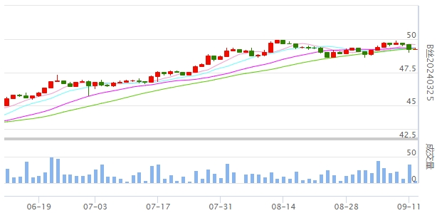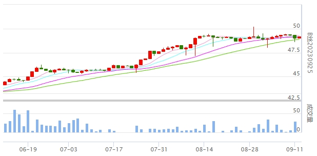 今日(2023年09月12日,周二)中國繭絲綢交易市場(chǎng)生絲指數(shù)上漲0.12%收于4906.91點(diǎn)。B絲(商檢4A級(jí)生絲):230925合約上漲0.15萬元報(bào)收于49.17萬元;240325合約上漲0.03萬元報(bào)收于49.26萬元;240925合約下跌0.03萬元報(bào)收于48.18萬元。