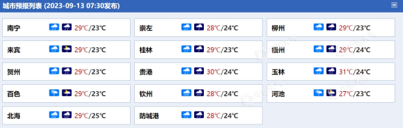 廣西各城市天氣預(yù)報