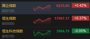 9月19日消息,港股三大指數(shù)漲跌不一,截至收盤,恒生指數(shù)(17997.17, 66.62, 0.37%)漲0.37%,報17997.17點,恒生科技指數(shù)(3984.79, -2.56, -0.06%)跌0.06%,國企指數(shù)漲0.42%。盤面上,核心科技股走勢分化,網(wǎng)易漲超1%,阿里巴巴、小米集團跟漲,京東集團跌超1%,百度集團、美團跟跌;汽車股跌幅明顯,零跑汽車(39.1, -1.90, -4.63%)、蔚來跌超4%;內(nèi)房股多數(shù)下跌,中國恒大(0.55, -0.06, -9.84%)跌近10%;燃氣股漲幅居前,昆侖能源(6.87, 0.45, 7.01%)漲超7%;煤炭股漲勢活躍,南戈壁(0.89, 0.10, 12.66%)漲超12%;電訊服務(wù)板塊活躍,中國移動(68.05, 1.40, 2.10%)漲超2%;黃金股強勢,中國黃金國際(38, 2.00, 5.56%)漲超5%。