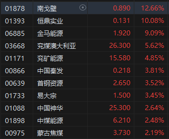 煤炭股漲勢活躍,南戈壁漲超12%。消息面上,近期港口煤價刷新四個月來新高。來自中國煤炭網(wǎng)(CCTD)的數(shù)據(jù)顯示,截至9月18日,CCTD環(huán)渤海5500K動力煤現(xiàn)貨參考價收于943元/噸,時隔三月后再度突破900元/噸關(guān)口。