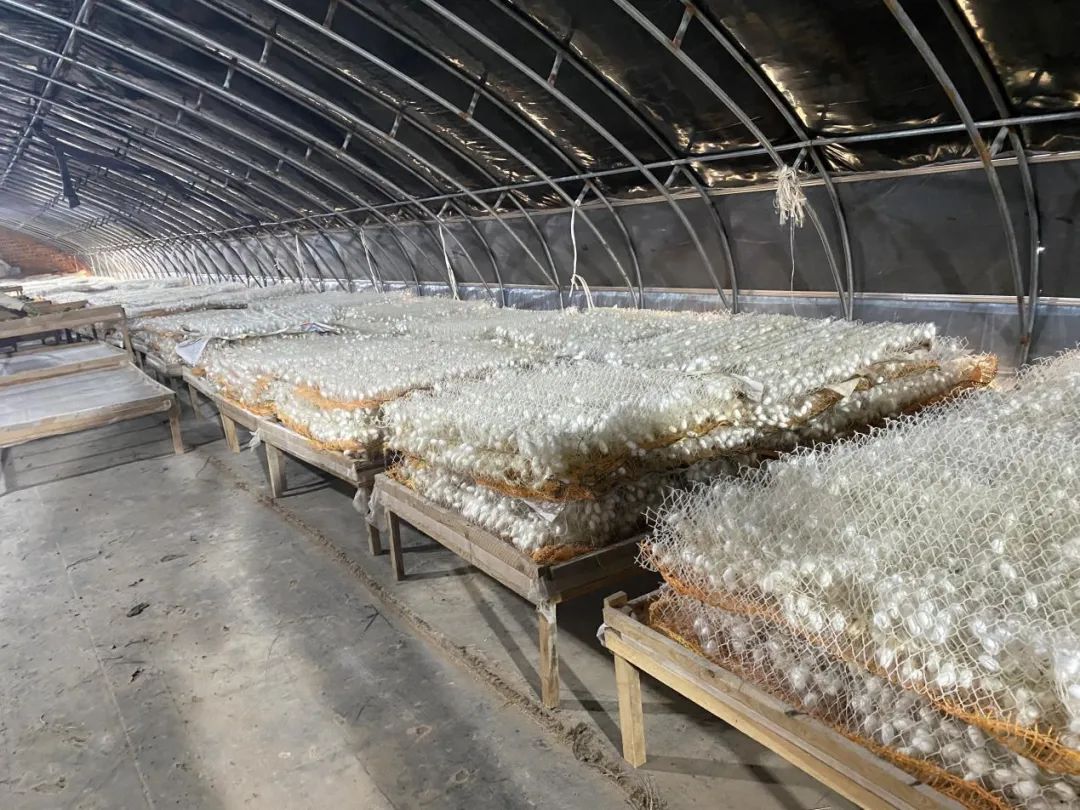 我是從2018年開始種桑樹的,剛開始種樹的時候沒養(yǎng)蠶,那兩年樹長得不太好,種樹以后第三年開始養(yǎng)的蠶,第一年養(yǎng)蠶不是特別理想,這兩年就好一點(diǎn)了,我一年可以養(yǎng)三批蠶,一批蠶大概是25-30萬條。