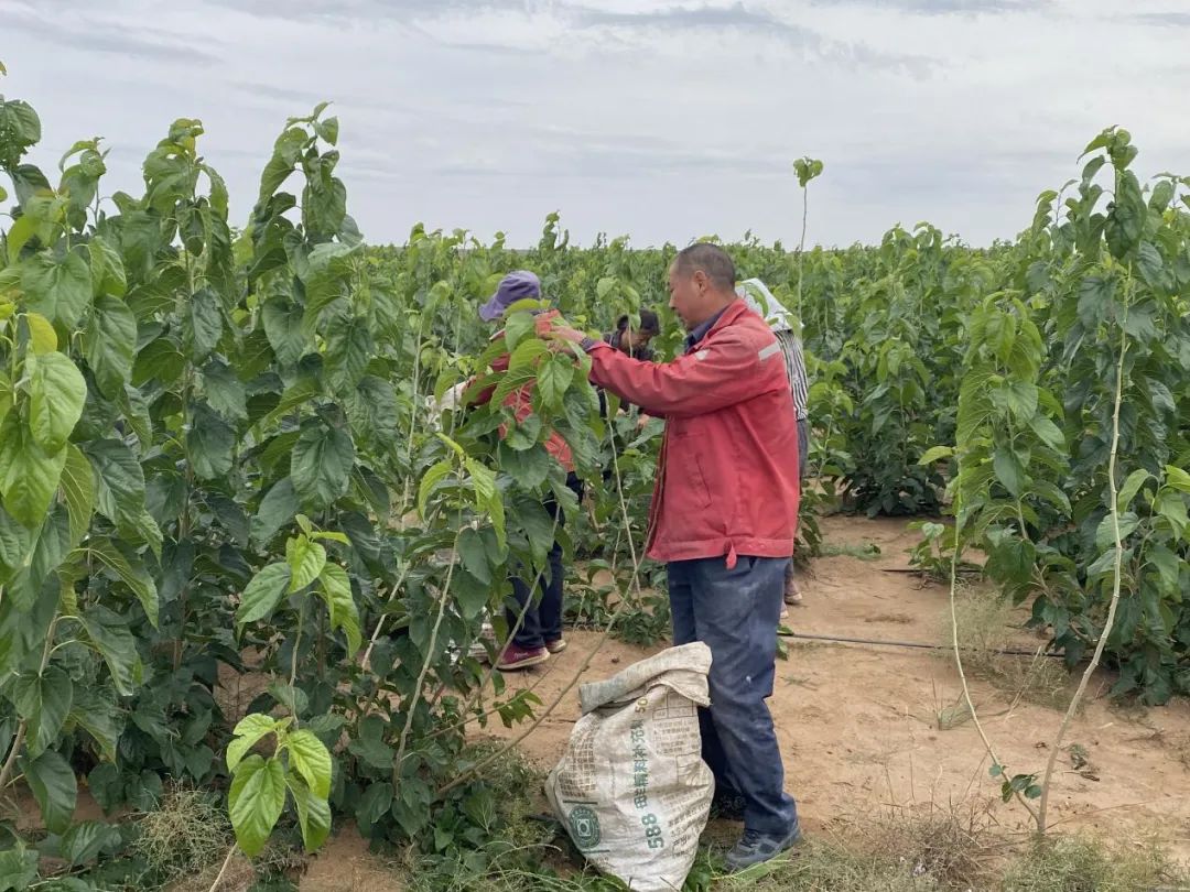 楊玉梅每年會從陜西省買進(jìn)蠶苗,根據(jù)木凱淖爾鎮(zhèn)本地的氣溫、濕度和桑葉的長勢情況來決定具體什么時候買進(jìn)蠶苗飼養(yǎng),正常年份大約在七八月份就可以開始飼養(yǎng)了,現(xiàn)在已經(jīng)是九月份了,楊玉梅和工人們要趕在下霜之前,將桑葉全部采摘完,儲存好,防止桑葉落霜,下霜意味著這一年蠶的飼養(yǎng)工作就結(jié)束了。