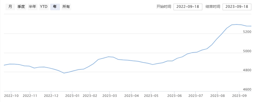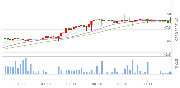 4A級生絲電子指數(shù)上,占指數(shù)權重較高的現(xiàn)貨月230925合約交易中,40個小節(jié)內(nèi),前39小節(jié)均略收綠,第40小節(jié)中,動盤以高于靜盤價格、49.5-49.68萬的價格有成交,帶動生絲指數(shù)由跌轉漲。但本周仍累計下跌0.26%。