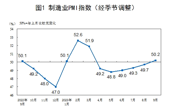 9月份,制造業(yè)采購經(jīng)理指數(shù)(PMI)為50.2%,比上月上升0.5個百分點(diǎn),重返擴(kuò)張區(qū)間。