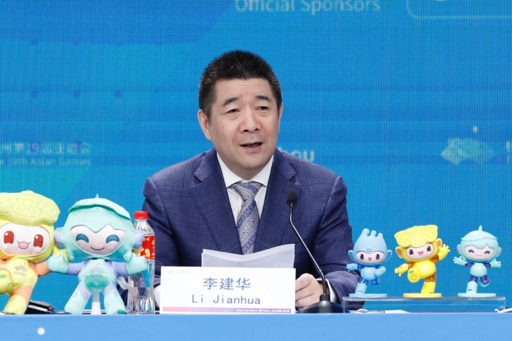 萬(wàn)事利絲綢董事長(zhǎng)李建華在杭州亞運(yùn)會(huì)“創(chuàng)新市場(chǎng)開(kāi)發(fā) 賦能亞運(yùn)盛會(huì)”主題新聞發(fā)布會(huì)現(xiàn)場(chǎng)