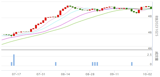 今日(2023年10月08日,周日)中國繭絲綢交易市場生絲指數(shù)下跌0.19%收于4905.17點,本周生絲指數(shù)下跌0.47%。B絲(商檢4A級生絲):231025合約下跌0.24萬元報收于49.14萬元;240325合約上漲0.15萬元報收于49.38萬元;240925合約上漲0.09萬元報收于48.27萬元。231025生絲合約日線