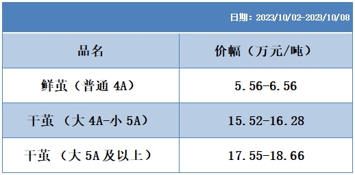 根據(jù)本周蠶繭報價按照指數(shù)方案形成的基準品價格區(qū)間