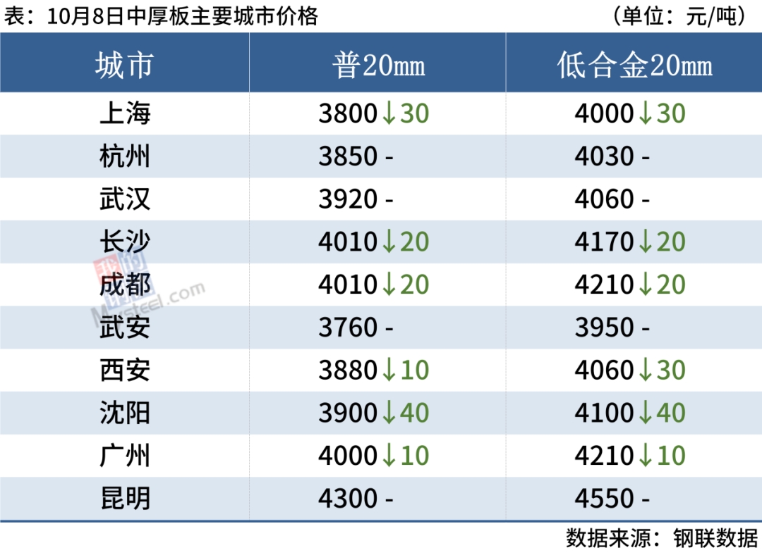 中厚板:10月8日,全國24個(gè)主要城市20mm普板均價(jià)3950元/噸,較上個(gè)交易日下跌16元/噸。雙節(jié)期間中板現(xiàn)貨庫存不斷增量,雖下游采購表現(xiàn)尚可,但貿(mào)易商對后市信心不足,操作方面多積極出貨為主,資源報(bào)價(jià)讓價(jià)空間較大。鋼廠方面,市場高供給狀態(tài)維持,部分鋼廠接單價(jià)格不斷下調(diào),但市場整體訂單積極性不高,需求釋放乏力。綜合來看,商戶對下游需求的可持續(xù)性預(yù)期不高,現(xiàn)貨價(jià)格支撐不足,看跌情緒較濃,預(yù)計(jì)9日全國中厚板價(jià)格弱穩(wěn)運(yùn)行。