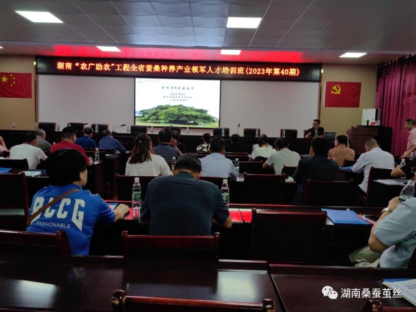 為深入貫徹落實(shí)黨的二十大精神和中央、省委農(nóng)業(yè)農(nóng)村工作會(huì)議精神,2023年9月25日至28日,湖南省“農(nóng)廣助農(nóng)”工程全省蠶桑種養(yǎng)產(chǎn)業(yè)領(lǐng)軍人才培訓(xùn)班在武岡成功舉辦。培訓(xùn)班由湖南省農(nóng)民科技教育培訓(xùn)中心(省農(nóng)業(yè)廣播電視學(xué)校)主辦,省蠶??茖W(xué)研究所、省繭絲綢行業(yè)協(xié)會(huì)、武岡市農(nóng)業(yè)農(nóng)村局、湖南湘絲眾鑫農(nóng)業(yè)開(kāi)發(fā)有限公司協(xié)辦。省農(nóng)業(yè)廣播電視學(xué)校副校長(zhǎng)喻宗希、省繭絲綢行業(yè)協(xié)會(huì)會(huì)長(zhǎng)談順友、武岡市副市長(zhǎng)周志強(qiáng)等領(lǐng)導(dǎo)出席開(kāi)班儀式。來(lái)自邵陽(yáng)武岡、綏寧,湘西州鳳凰、花垣,永州道縣、新田等7個(gè)市州、18個(gè)縣(市區(qū))種桑養(yǎng)蠶產(chǎn)業(yè)領(lǐng)軍人才及學(xué)員共80多人參加了培訓(xùn)。
