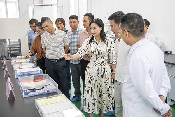 貴港市農(nóng)業(yè)科學(xué)研究院一行先后參觀了廣西蠶業(yè)技術(shù)推廣站桑果酒中試車間、人工飼料養(yǎng)蠶基地、桑樹種質(zhì)資源圃、桑蠶母種種性保持與繁育中心、蠶桑遺傳改良與技術(shù)創(chuàng)新中心實驗室、科研成果展示館,并與廣西蠶業(yè)技術(shù)推廣站領(lǐng)導(dǎo)班子及相關(guān)業(yè)務(wù)科室負(fù)責(zé)人座談交流。