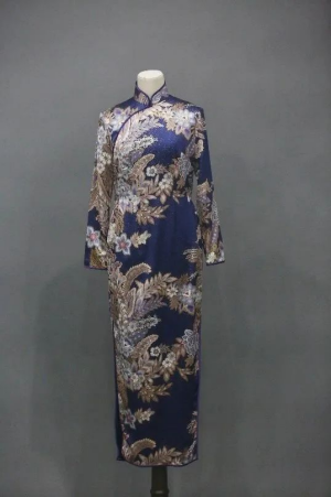 據(jù)悉,林會(huì)長(zhǎng)此次捐贈(zèng)的藍(lán)地花卉紋緞面旗袍曾在其私人聚會(huì)中穿著,旗袍面料來(lái)自上海,由香港手工旗袍師傅劉安慶設(shè)計(jì)制作。劉安慶入行制作旗袍近60年,《花樣年華》《2046》《一代宗師》等多部電影都使用了他的作品。