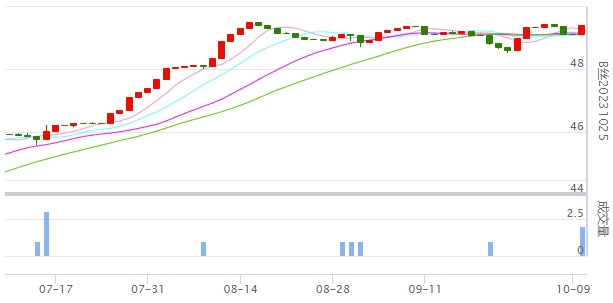 今日(2023年10月10日,周二)中國繭絲綢交易市場(chǎng)生絲指數(shù)上漲0.38%收于4929.08點(diǎn)。B絲(商檢4A級(jí)生絲):231025合約上漲0.27萬元報(bào)收于49.41萬元;240325合約上漲0.15萬元報(bào)收于49.74萬元;240925合約上漲0.03萬元報(bào)收于48.42萬元。