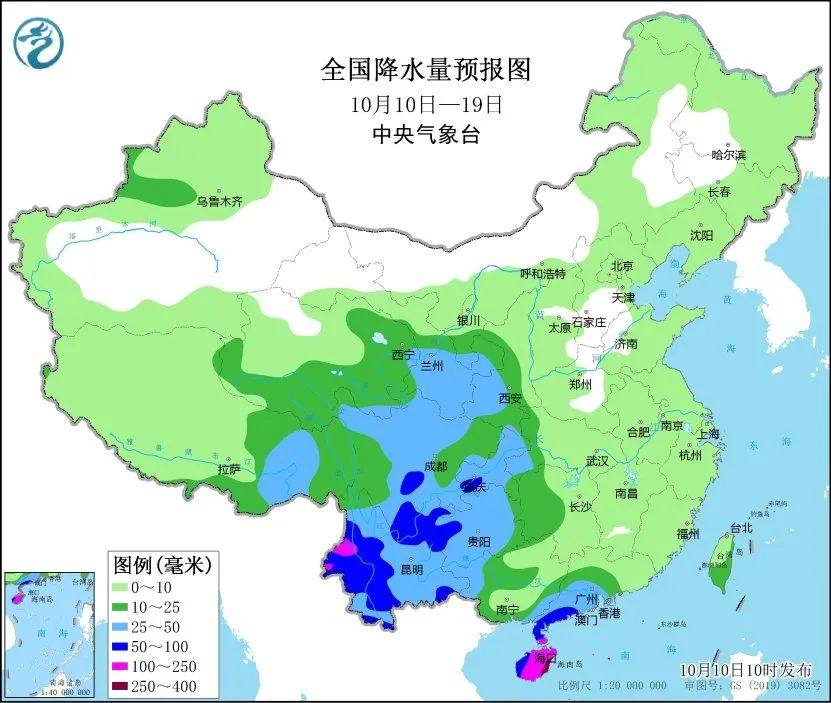 蠶桑天氣上,未來10天(10月10-19日),青藏高原東部、甘肅南部、四川、重慶、云南、海南島等地累計(jì)降水量有15~40毫米,云南西部、海南島等地部分地區(qū)有50~90毫米,局地超過150毫米;上述大部分地區(qū)累計(jì)降水量較常年同期偏多4成至1倍,局地偏多2倍以上,我國其余大部降水偏少。