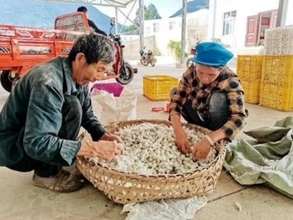 在鲹魚河村七、八兩個組,有養(yǎng)蠶戶120多戶,產(chǎn)繭近700擔(dān),年產(chǎn)值180余萬元。而會東全縣,截至9月27日,收購蠶繭16124.22擔(dān),蠶農(nóng)售繭收入4272.31萬元。