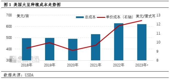 2023年預(yù)估美豆成本為1240美分/蒲式耳