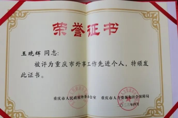 在重慶市委、市政府堅(jiān)強(qiáng)領(lǐng)導(dǎo)下,根據(jù)《關(guān)于表彰重慶市外事工作先進(jìn)集體和先進(jìn)個人的決定(渝人社〔2023〕156號)》文件發(fā)布后,在重慶市工商聯(lián)對推動全市外事工作取得新成效、新進(jìn)展的“先進(jìn)集體和先進(jìn)個人”進(jìn)行了頒獎儀式。