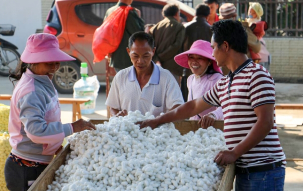 2022年底在德宏州全年放種22095張,生產(chǎn)鮮繭1065.13噸,較2021年962.36噸提高了102.77噸,增加10.65%。帶動2979戶養(yǎng)蠶戶收入繭款4563.74萬元,戶均收入1.53萬元,其中帶動建檔立卡及邊緣戶1118戶,產(chǎn)繭293.76噸,收入繭款1242.58萬元。企業(yè)吸納建檔立卡貧困人口42名務工,年度支付工資89.84萬元、保險及生活福利60多萬元。流轉(zhuǎn)84名貧困戶的土地,年度支付流轉(zhuǎn)費50萬元。蠶桑鄉(xiāng)(鎮(zhèn))的培育為繭絲綢產(chǎn)業(yè)在隴川集群發(fā)展打好產(chǎn)業(yè)基礎,使分散型、低效益的農(nóng)業(yè)經(jīng)濟向集約化規(guī)?;透咝б娣较蜣D(zhuǎn)變。