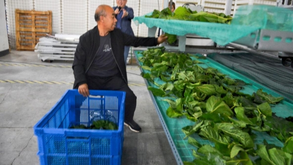在工程師的指導下,學員們對“半自動桑葉育大蠶加量版”成套設備進行了實訓操作——一個學員坐在轉椅上,操作按鈕讓蠶臺旋轉到合適自己操作的位置,輕輕松松坐著添加桑葉,一個蠶臺完成添桑后,操作按鈕,下一個蠶臺又旋轉到學員座位前,學員進行添桑,放行,以此循環(huán)……實訓學員們高興得合不攏嘴,表示:這樣養(yǎng)蠶太省力了,也很干凈,一個人可以輕輕松松操作幾臺設備(圖3)。在工程師的指導下,學員們對全自動桑枝葉分離機進行了實訓操作——一個學員抱起一捆桑枝條,按照操作規(guī)范放入設備入料口,桑枝條自動進入機器,光桿枝條從設備后端飛出,桑葉從設備側面出料,快速實現(xiàn)桑葉和枝條分離。學員們紛紛表示:有這個機器,再也不用頂著大太陽在地里一片一片采摘桑葉了。