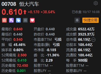 恒大汽車漲超38%。消息面上,10月16日晚間,中國恒大(0.29, 0.01, 3.57%)新能源汽車集團(tuán)有限公司發(fā)布公告稱,將進(jìn)一步延遲寄發(fā)債轉(zhuǎn)股及紐頓集團(tuán)(NWTN)認(rèn)購事項(xiàng)通函,恒大與認(rèn)購方因9月28日股份暫停買賣及近期恒大集團(tuán)發(fā)生的一系列變化,就擬議交易及擬議交易條款的潛在重新談判互相來往通信。
