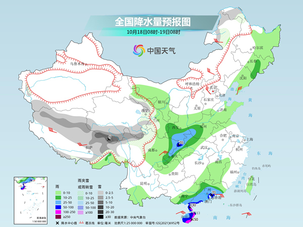 后天,吉林東部、新疆南部、西藏北部和東部、青海中南部、川西高原大部等地部分地區(qū)有小雪或雨夾雪;湖南南部、江西南部、福建南部、廣東、廣西大部、海南島北部和東部等地部分地區(qū)有中到大雨,其中,廣西東南部、廣東西南部等地局地有暴雨或大暴雨(100~130毫米)。