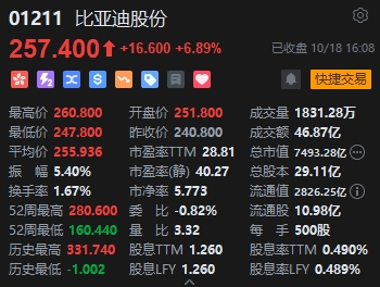 汽車股部分上漲,比亞迪漲近7%。消息面上,比亞迪股份(257.4, 16.60, 6.89%)預計2023年前三季度實現(xiàn)歸屬于上市公司股東的凈利潤205億-225億元,同比上升120.16%-141.64%。2023年第三季度,公司新能源汽車銷量持續(xù)創(chuàng)下歷史新高,穩(wěn)居全球新能源汽車銷量第一。