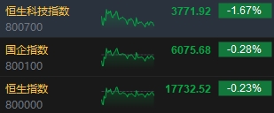 10月18日消息,港股三大指數齊跌,截至收盤,恒生指數(17732.52, -40.82, -0.23%)跌0.23%,報17732.52點,恒生科技指數(3771.92, -64.13, -1.67%)跌1.67%,國企指數跌0.28%。盤面上,核心科技股下挫,快手跌近9%,百度集團跌近5%,京東集團跌超3%;汽車股部分上漲,比亞迪漲近7%;體育用品股漲幅居前,安踏體育(94.25, 3.30, 3.63%)漲近4%;醫(yī)藥板塊表現(xiàn)萎靡,三葉草生物跌超10%;半導體、石油、蘋果概念等板塊飄紅。