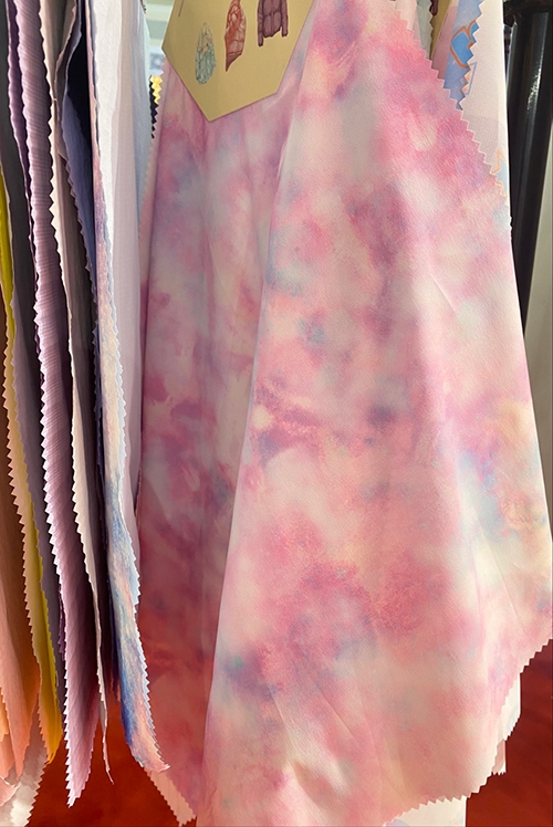 作為“盛澤織造”品牌企業(yè),蘇州羅曼羅蘭時(shí)尚集團(tuán)旗下面料品牌“莊面印象”此次參展帶來(lái)了抽象派風(fēng)格、扎染民族風(fēng)、小香風(fēng)等多種原創(chuàng)印花面料。莊面印象產(chǎn)品總監(jiān)李乾坤表示,公司印花始終圍繞“小批量、定制快反”進(jìn)行原創(chuàng)發(fā)行、定制化反,主要解決服裝行業(yè)小批量快反的三個(gè)痛點(diǎn),一是小批量定制化,百萬(wàn)花型可供開(kāi)發(fā)選樣參考,花型確認(rèn)可做到一天打出成品樣布;二是減少商家?guī)齑?,小批量定制化的快反生產(chǎn)可以做到5—7天出貨;三是快時(shí)尚定制,可以做到1—3天出樣。