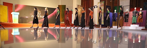 推介活動(dòng)期間,由佛山市順德區(qū)倫教香云紗協(xié)會(huì)和廣東省絲綢紡織集團(tuán)有限公司主辦,華南農(nóng)業(yè)大學(xué)藝術(shù)學(xué)院、廣東省倫教蠶種場有限公司承辦,桑蠶絲綢文化作品及特色產(chǎn)品推介發(fā)布活動(dòng)組委會(huì)、廣東省佛山市順德區(qū)倫教陸柒捌文化發(fā)展基金會(huì)、廣東省佛山市順德區(qū)倫教街道文化站廣東省佛山市順德區(qū)順熹曬蔑廠、廣東省蠶桑產(chǎn)業(yè)技術(shù)體系協(xié)辦的香云紗時(shí)尚化服飾展覽「雲(yún)啟」成功舉辦。