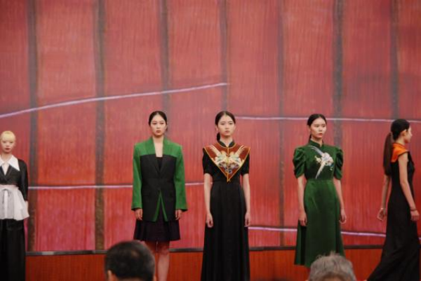 據(jù)介紹,「雲(yún)」取字香云紗之“云”,代表香云紗中國非物質(zhì)文化遺產(chǎn)的“可持續(xù)性”以及交流融通的“流動(dòng)性”,也意味著倫教香云紗融入世界,客如云來所面對(duì)的全球化“機(jī)遇”?!竼ⅰ勾韨惤滔阍萍喩魇仄湔?、啟新拓域,開啟倫教香云紗與時(shí)尚文化的“溝通與連接”,展開全面的“創(chuàng)新與合作”,探索信息時(shí)代的“機(jī)遇與未來”。此次展出服裝由中國十佳服裝設(shè)計(jì)師、中國紡織非遺推廣大使、華南農(nóng)業(yè)大學(xué)藝術(shù)學(xué)院院長金憓教授的團(tuán)隊(duì)精心打造。