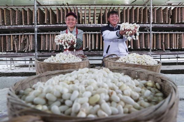 黔江區(qū)是重慶第一大蠶桑種植基地,被國(guó)家林業(yè)和草原局認(rèn)定為迄今國(guó)內(nèi)唯一的蠶桑生物產(chǎn)業(yè)基地,蠶桑面積達(dá)到9.5萬(wàn)畝,蠶農(nóng)綜合收入達(dá)到3億多元,是當(dāng)?shù)亟?jīng)濟(jì)增收、農(nóng)民致富、鄉(xiāng)村振興的生態(tài)產(chǎn)業(yè)。近年來(lái),該區(qū)根據(jù)季節(jié)和桑園所在地的不同海拔,全年分7批次飼養(yǎng)桑蠶。時(shí)下,今年最后一批次即晚秋蠶結(jié)繭結(jié)束,蠶農(nóng)們抓緊采摘蠶繭、交售企業(yè),確保增收。