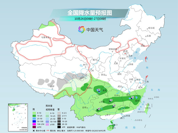 今天(10月26日)南方大范圍降雨將持續(xù),雨帶南壓,強度也將有所減弱,西南地區(qū)、江南大部、華南大部等地有小到中雨,局地大雨。同時,在冷空氣影響下,北方將出現(xiàn)降溫,東北降溫幅度最為明顯,部分地區(qū)將超10℃。不過,降溫是短暫的,明天起氣溫又將回升,氣溫偏暖格局將維持。