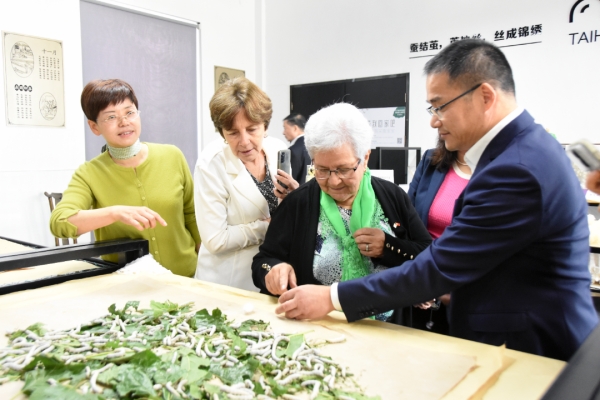 在中國首個蠶桑文化主題生態(tài)園——太湖雪蠶桑文化園,貝赫拉諾一行饒有興致地參觀了蠶桑文化展廳、育蠶課堂、創(chuàng)客工坊等場所,深入了解中國源遠流長的絲綢文化歷史,詳細聽取震澤鎮(zhèn)大力保護傳承蠶桑文化,做大做強絲綢產(chǎn)業(yè),推進農(nóng)文旅融合發(fā)展的情況介紹。期間,貝赫拉諾還與正在參加研學活動的學生進行互動交流,對震澤鎮(zhèn)通過開展蠶桑研學,傳承絲綢文化,打造特色教育,增強文化自信的做法表示了高度贊賞。