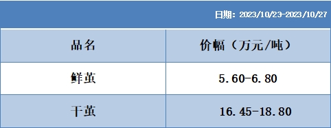 本周高品位生絲協(xié)作單位成交價(jià)格區(qū)間