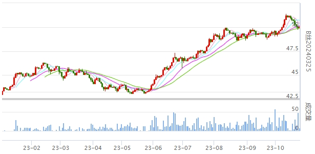 今日(2023年10月27日,周五)中國(guó)繭絲綢交易市場(chǎng)生絲指數(shù)上漲0.15%收于4932.28點(diǎn),本周生絲指數(shù)下跌1.43%。B絲(商檢4A級(jí)生絲):231125合約上漲0.09萬(wàn)元報(bào)收于49.50萬(wàn)元;240325合約上漲0.12萬(wàn)元報(bào)收于50.04萬(wàn)元;240925合約上漲0.15萬(wàn)元報(bào)收于48.24萬(wàn)元。231125生絲合約日線