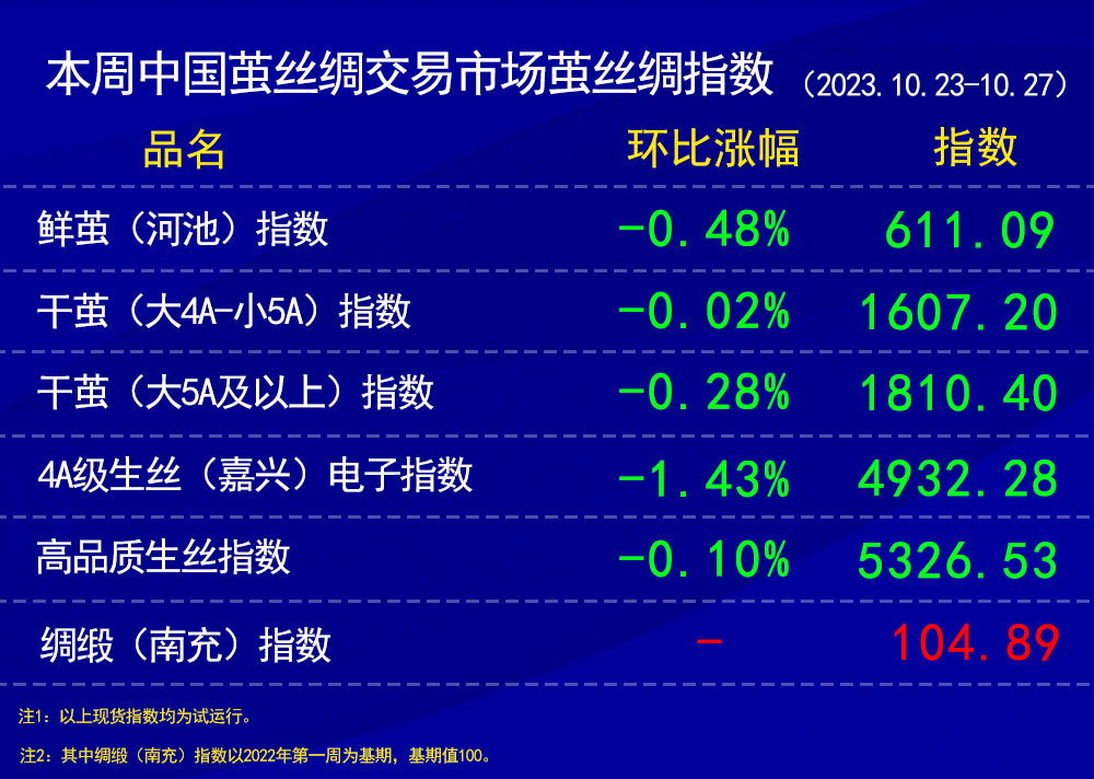 本周中國(guó)繭絲綢交易市場(chǎng)繭絲綢指數(shù)