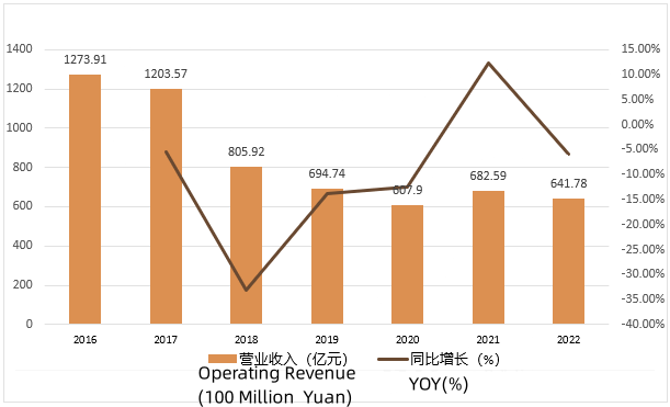 數(shù)據(jù) | 2016-2022年中國(guó)規(guī)模以上絲綢企業(yè)營(yíng)業(yè)收入統(tǒng)計(jì)