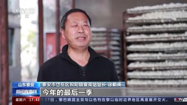 泰安市岱岳區(qū)祝陽鎮(zhèn)蠶繭站站長 徐勤庚:現(xiàn)在是晚秋蠶,今年的最后一季,預(yù)計今年產(chǎn)量比去年增收10%以上。