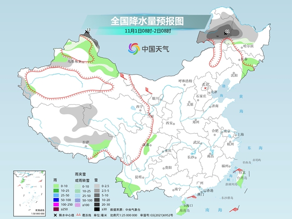后天,內(nèi)蒙古東部、黑龍江大部、新疆北部、西藏北部和東部、青海北部和西部等地部分地區(qū)有小到中雪或雨夾雪,其中,新疆北疆北部、黑龍江北部等地局地有大到暴雪或大暴雪。遼寧東部、吉林東部、黑龍江南部、四川盆地、貴州北部、陜西南部等地部分地區(qū)有小到中雨,局地有大雨。