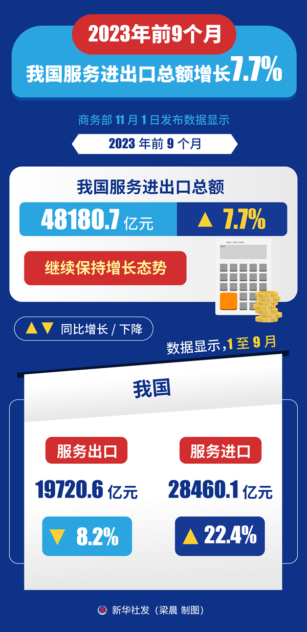 商務(wù)部1日發(fā)布數(shù)據(jù)顯示,今年前9個月,我國服務(wù)進出口總額48180.7億元,同比增長7.7%,繼續(xù)保持增長態(tài)勢。