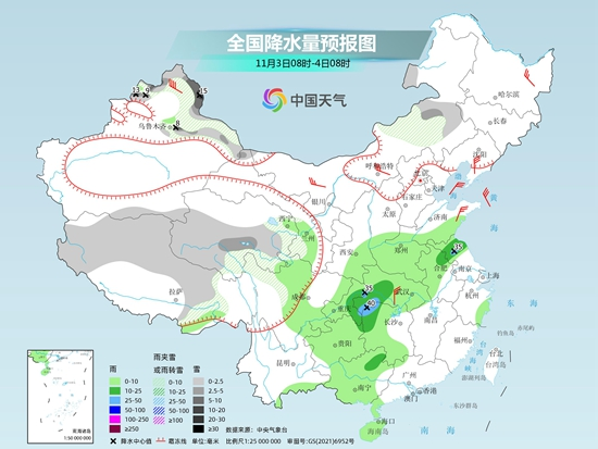 冷空氣在帶來降溫的同時(shí),還將制造大范圍雨雪天氣。今天,黃淮、江淮及貴州、重慶等地將出現(xiàn)大范圍降雨,其中新疆北部、青海中南部、內(nèi)蒙古東南部、西藏等地部分地區(qū)有小到中雪或雨夾雪,其中,新疆塔城、阿勒泰和沿天山地區(qū)局地有大到暴雪。江蘇北部、安徽東北部、重慶東部、湖北西部、湖南西北部等地部分地區(qū)有中雨,局地有大雨。